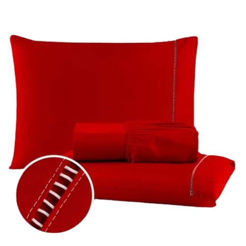 Jogo de Lençol 03 Peças 400 Fios Cama Queen em Micro percal com Ponto Palito: